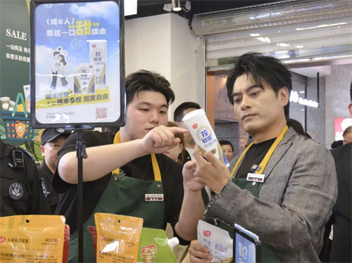 开业当天,开启创新直播,演员陈龙惊喜空降118广场,担任农工商超市一日店长和光明青年主播“康康”一起组成带货搭档,向现场顾客推荐光明好物,现场氛围持续升温。