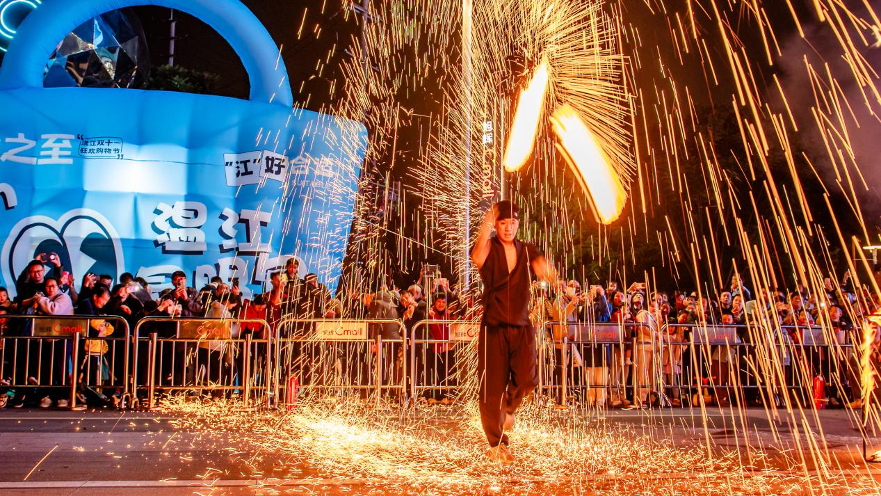今年 5 月,温江区消费品以旧换新 “四进” 活动暨 “温江造” 展销在此启动,助力 “温江造” 品牌走向大众视野;联合温江区商务局、天府街道落地 “玩啤消夏温江啤酒美食季”,联合成都市商务局、温江区人民政府举办“温江首届双十一狂欢购物节”,联合成都市温江区文化广电体育和旅游局、成都市温江区文学艺术界联合会打造“温江造火锅文化节”,以高频次政企联办活动搭建推广平台。