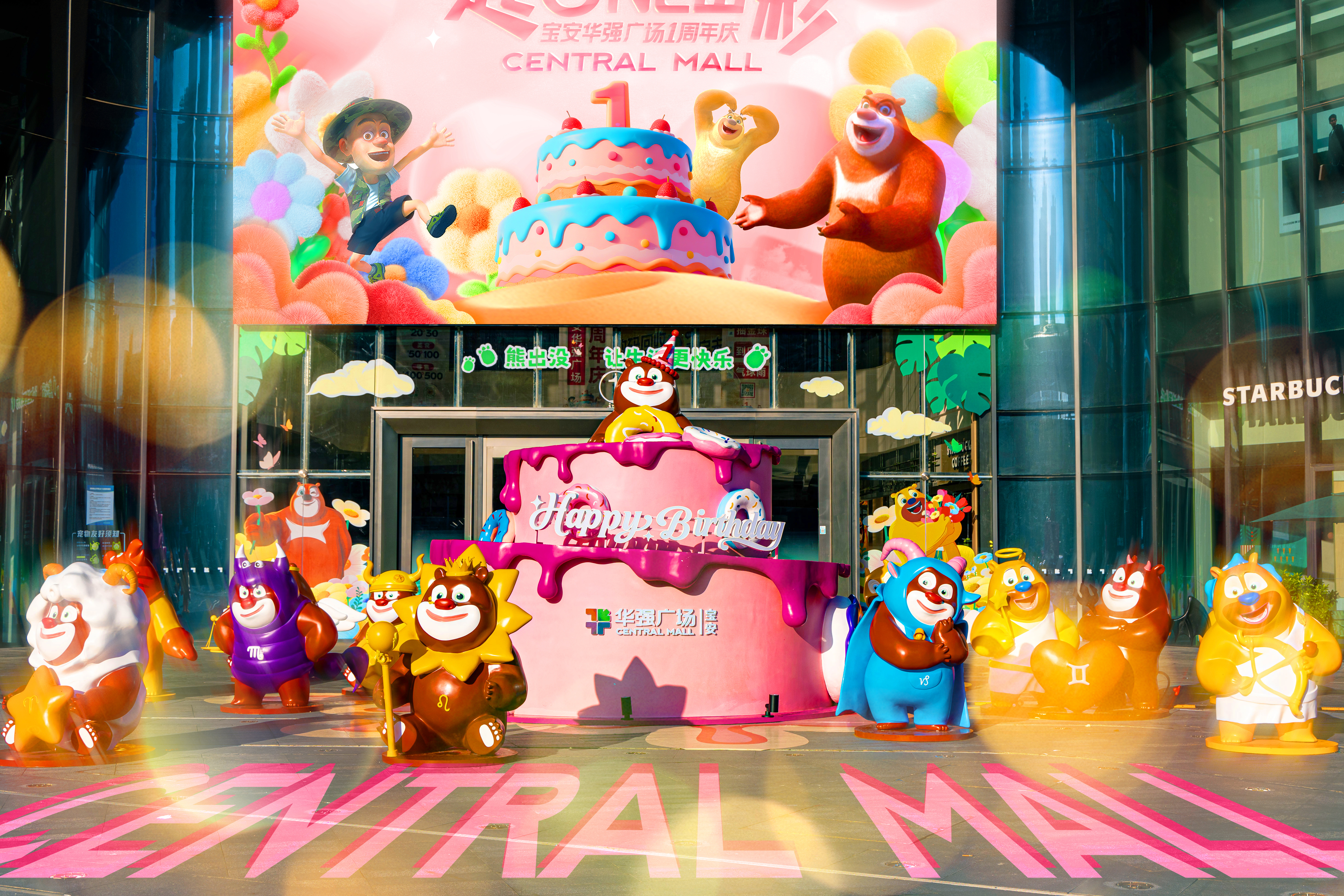 一年前,深圳宝安华强广场以“全国首家熊出没主题购物中心”的定位重磅亮相,如同一颗投入商业红海的深水炸弹,引发了行业内外的高度关注。在商业地产同质化日益严重的今天,引入知名IP已成为购物中心寻求差异化的常规操作,但大多停留在短期的快闪店、主题美陈层面,而在探索IP与商业体破壁融合的一年里,宝安华强广场也迎来了一周年庆,此次以“一起ONE出彩”主题携手熊出没IP推出熊出没十二星座全国首展,萌趣熊大、熊二形象深度融入商业肌理。面世一周年,我们回顾其探索路径,不仅看到了一个IP如何持续为商业赋能,更窥见了一种“产业+商业+文化”深度融合的崭新范本。