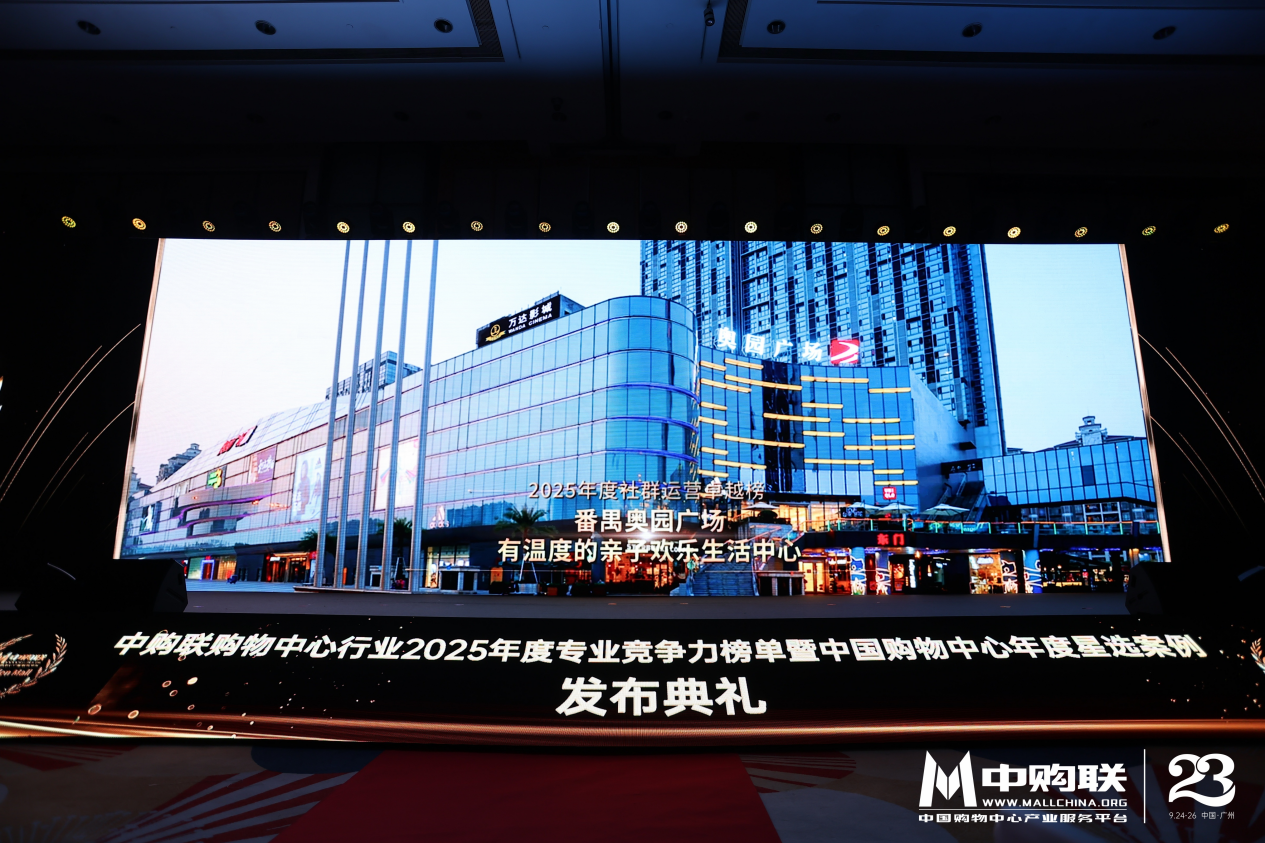 番禺奥园广场荣登Golden Mall中购联购物中心行业2025年度社群运营卓越榜