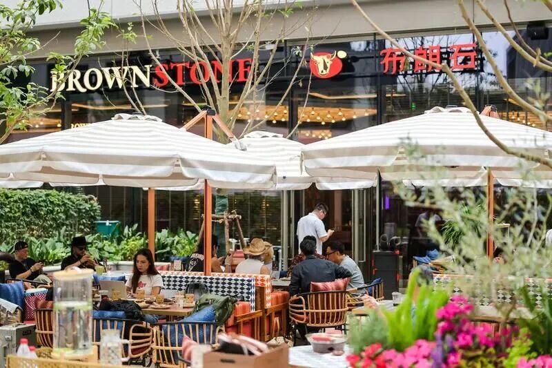 6500平方米的全景天幕作为建筑亮点与商业模式创新的物理载体,在巨型天幕下打造独特的“露台经济”,延续并升级了新天地经典的“外摆餐饮社交体验”。超过六成品牌设有露台或外摆区,目前约30%的商户计划营业至凌晨2点,其中包括13个露台餐厅,将大力提振区域夜间消费活力。
