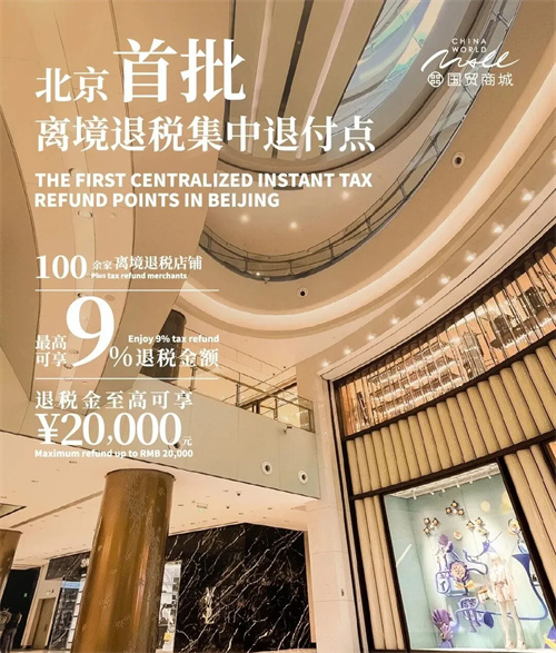 离境退税是“购在中国”吸引入境消费的核心举措,国贸中心聚焦跨境消费痛点,2025年5月,国贸商城经国家税务总局北京市税务局批准,正式成为北京市首批三家、朝阳区首家“离境退税即买即退集中退付点”,离境退税范围覆盖全北京,重点辐射朝阳区CBD区域,为入境游客提供更便捷、高效的购物退税服务。