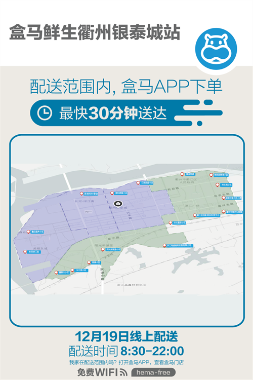 为回应衢州消费者对盒马鲜生的热切期待,门店在正式营业前将推出多项活动。其中,衢州银泰城商圈内将设立线下快闪店,让市民提前体验并购买盒马网红畅销产品。线上服务也将同步发力,12月19日起,盒马APP将在衢州地区开放线上配送服务,覆盖周边三公里范围,市民可通过APP一键下单,享受便捷购物体验。