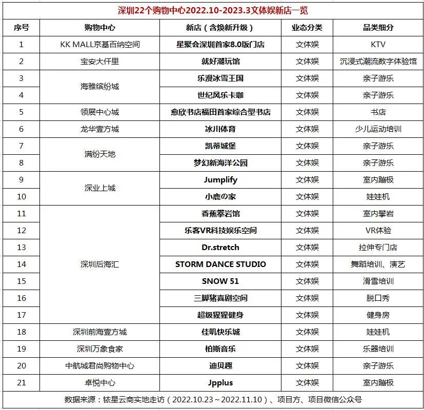 公众号后台回复“深圳新店”获取深圳22个购物中心品牌调改总表名单