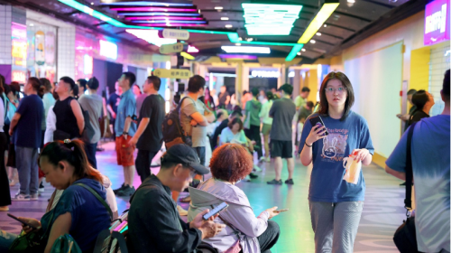 从一楼拾梯而入,整个空间围绕当下年轻人“爱活力、爱探索、爱自由、爱社交”的特质,项目推出了以下3大主题场景、4大打卡空间:潘达的反转世界,憨态可掬的大熊猫,利用镜面映像创造出令人惊叹的视觉效果,可以在现实世界中看到镜像中的自己与奇幻场景同框的震撼景象,记录下独有的探索之旅。即刻发光治愈花园,色彩斑斓、灵动活现,在闪闪发光的美好景色下,感受时间的流动,充实从早到晚的12小时,治愈内心。朋克乐园,激光矩阵,赛博朋克风拉满,酷炫好玩又出片。3大主题空间多元化的风格、顶尖的声光电配合,为消费者提供独一无二的社交体验,并针对不同细分人群营造了分段式、沉浸式的7*12小时全时段新鲜潮流体验。