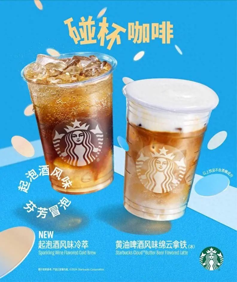 7月21日起,起泡酒风味冷萃与黄油啤酒风味绵云拿铁登陆全国7000余家星巴克门店。区别于传统的酒精饮料,它们不含酒精,却拥有醉人酒香风味,将为夏日赛事时光加满欢乐气氛。