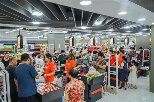 走进超市,宽敞明亮的购物环境让人眼前一亮,货架上商品琳琅满目,从新鲜果蔬到海鲜肉类,从日用百货到精品零食,应有尽有,满足了不同顾客的多元化需求。超市内的顾客摩肩接踵,人山人海,果蔬专区更是被大家围得水泄不通……