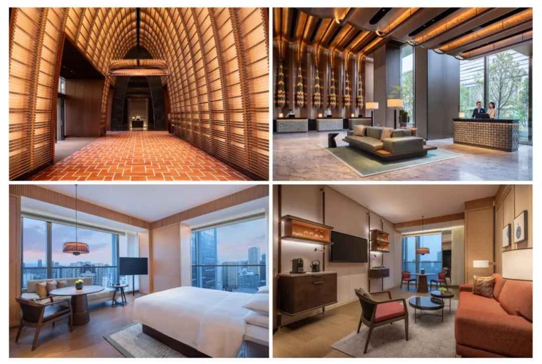 昆明君悦酒店整体设计由MQ设计工作室和东京Nao建筑师事务所联袂呈献,以云南的迷人自然风光和深厚的人文底蕴为灵感,通过现代设计手法,营造出一个奢华且极具当地风情感染力的城中目的地。酒店室内设计中融入了反映当地色彩、纹理和民族工艺的元素,在致敬云南独特的地貌风情的同时,也对云南地区的环境和人文进行了全新的解读。酒店共拥有331间舒适雅致的客房及套房,房间面积45平方米起,将现代奢华与当地特色完美融合。