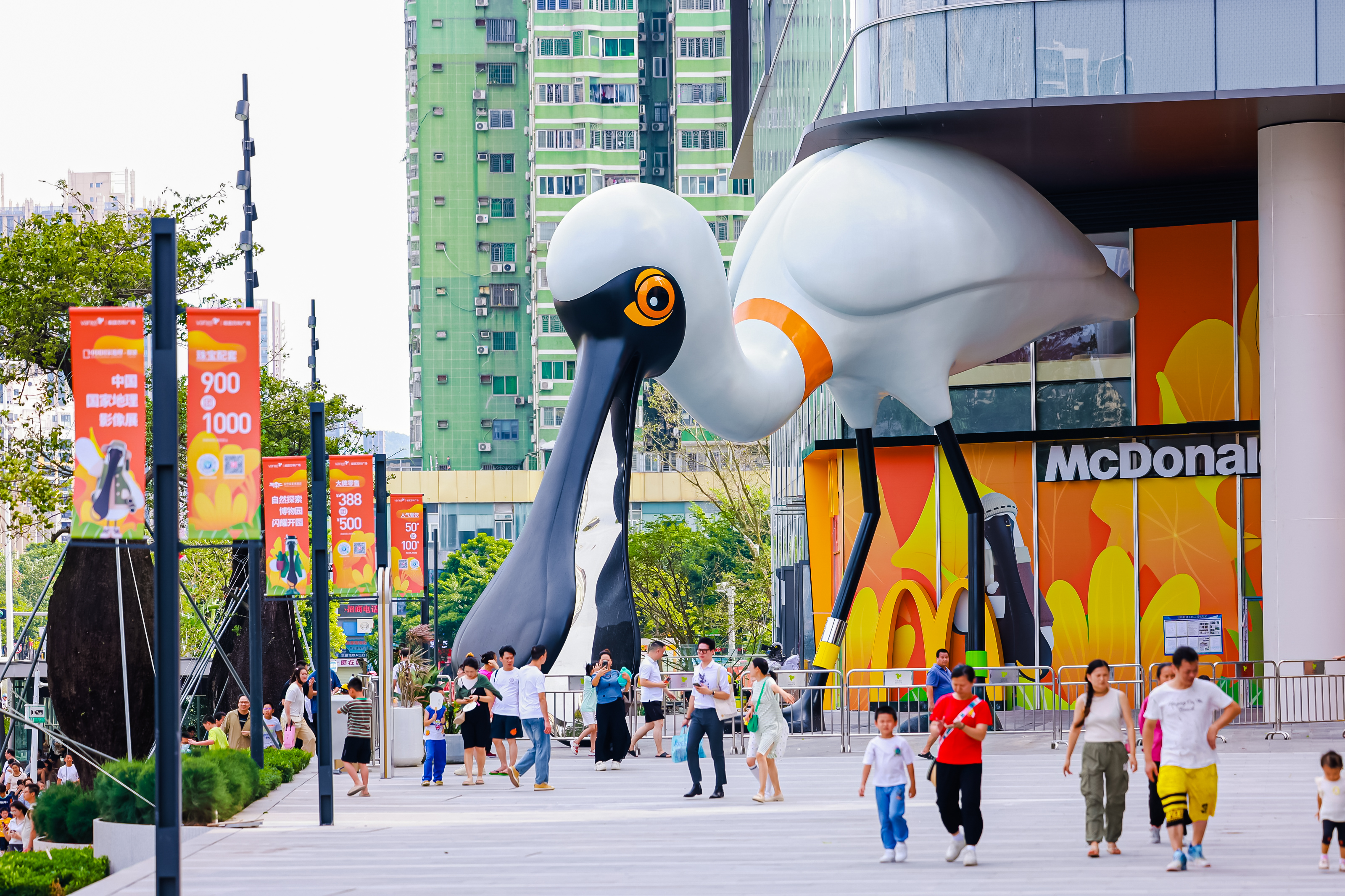 其中,最为代表性的如园长黑脸琵鹭PiPi。据了解,全球有近10%黑脸琵鹭在深圳湾过冬,其也成为了深圳市民最期待的国际一级保护动物。对此,项目与“大黄鸭之父”荷兰艺术家弗洛伦泰因·霍夫曼在主入口打造了高约10米的大型公共艺术雕塑,塑造深圳的在地精神记忆坐标。