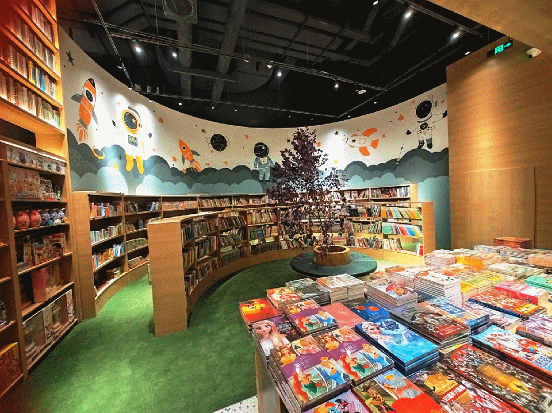 如为了充分满足家庭亲子客群的多重需求,书店不仅舍弃了近300平米经营面积,着重打造出一个「免费儿童娱乐区」,更有前沿教培、助学读物、游乐设施等,通过富有趣味性的方式传递文化知识和价值观。