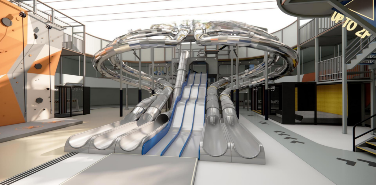 弹力梦工厂坐落在海口日月广场中区曜日中庭,打造挑高超10米、近6000平超大空间。将拥有海南首个室内最大滑梯,海南最大室内高空拓展、海南首个360°环形自行车、海南首个超大绳网,并精心规划卡丁车、魔方攀岩、VR设备、电玩、梅花桩、网红秋千、百万海洋球、蹦床、蜘蛛墙、蜘蛛塔、超大 EPP积木、泡泡足球、旱雪滑梯等超30种创新娱乐项目,构建 “亲子 + 运动” 新型业态,打造集运动、探险、游乐、潮玩于一体的沉浸式体验空间。其独创的高空运动挑战项目,搭配持续推新的主题活动,将为海口市民与岛内外游客提供前所未有的休闲娱乐新选择。