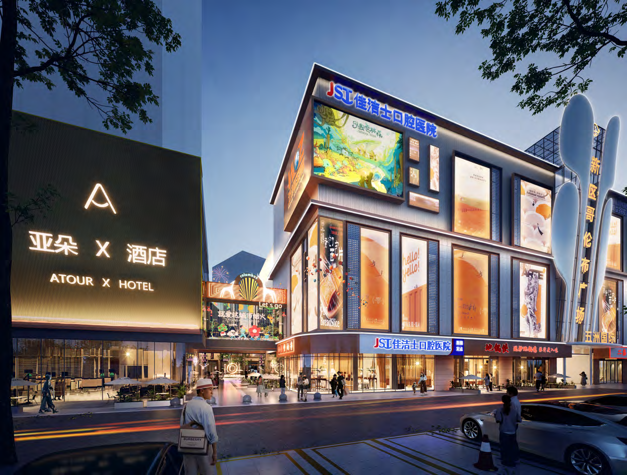 新区五洲哥伦布广场通过外立面重塑城市形象、滨水空间激活消费潜力,它的焕新不仅是物理空间改造,更是商业模式的迭代。从建筑美学革新到业态组合升级,这场商业地标的重生大戏,正在为城市商业进化书写新范本。