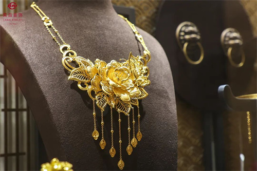 记者在现场看到,菜百首饰祥云店经营黄金、铂金饰品,投资金条,翠钻珠宝等全品类商品。
