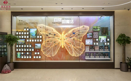 工作人员介绍,在这里可以选购到覆盖人生每个美好时刻的精美饰品,享受到涵盖售前、售中、售后的金质服务,还可以欣赏到被联合国教科文组织授予“民间工艺艺术家”称号的施禀谋大师的作品,观看到切叶蚁家族的“分工合作”、“会发光”的石头、包裹在树脂里的昆虫,集“购、享、览、学、游”于一身,将文化科普与互动体验有机融合,给予消费者沉浸式、趣味性的购物体验。
