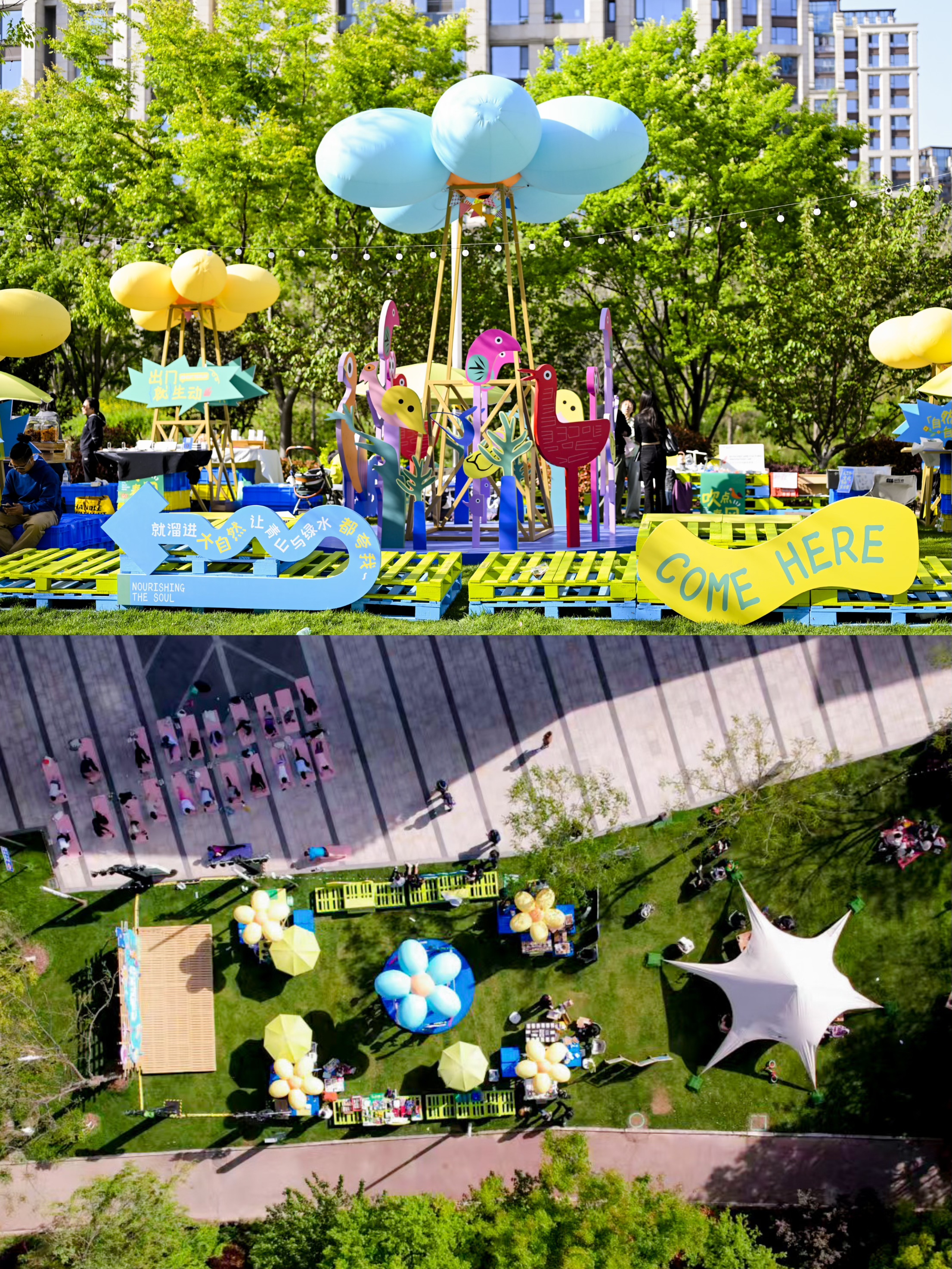 合景·悠方(上海),延续湖畔生活形成的自然标签,将城市空间转化为充满生命力的自然片场,在此落地“花朵云树”主装置,设置自然有料互动区、GO野运动体验区,让庆祝化作随性探索的有机表达。
