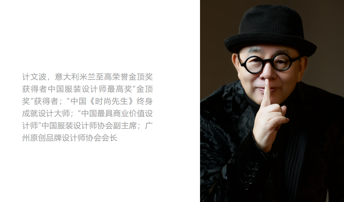 不同于大多数设计师对于传统文化的解读,服装设计师计文波先生在传统文化的展现上更亲睐于突出服装与人物气质的默契表达,将传统文化所代表的精神气质和审美风格运用在服装设计风格中。