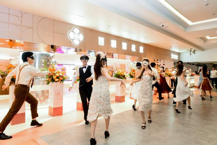 穿过石库门形制的时空回廊,一场沉浸式繁花舞会正复刻着摩登时代的风华。在百老汇风格的流光溢彩中,萨克斯旋律下的摇曳身姿,将来宾们引入鎏金岁月的记忆场。