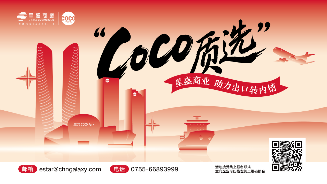 为响应国家 “双循环” 战略,赋能外贸企业开拓国内市场,星盛商业率先响应深圳零售商业协会号召,并在龙岗区商务局指调下于 4 月 29 日在深圳星河 WORLD・COCO Park 启动 “COCO 质选” 专项活动,依托产业园生态优势、购物中心成熟商圈资源及数智化运营能力,为外贸企业搭建内销转型平台,打通“出口转内销”全链路,助力企业从“国际工厂”向“国货品牌”转型升级。
