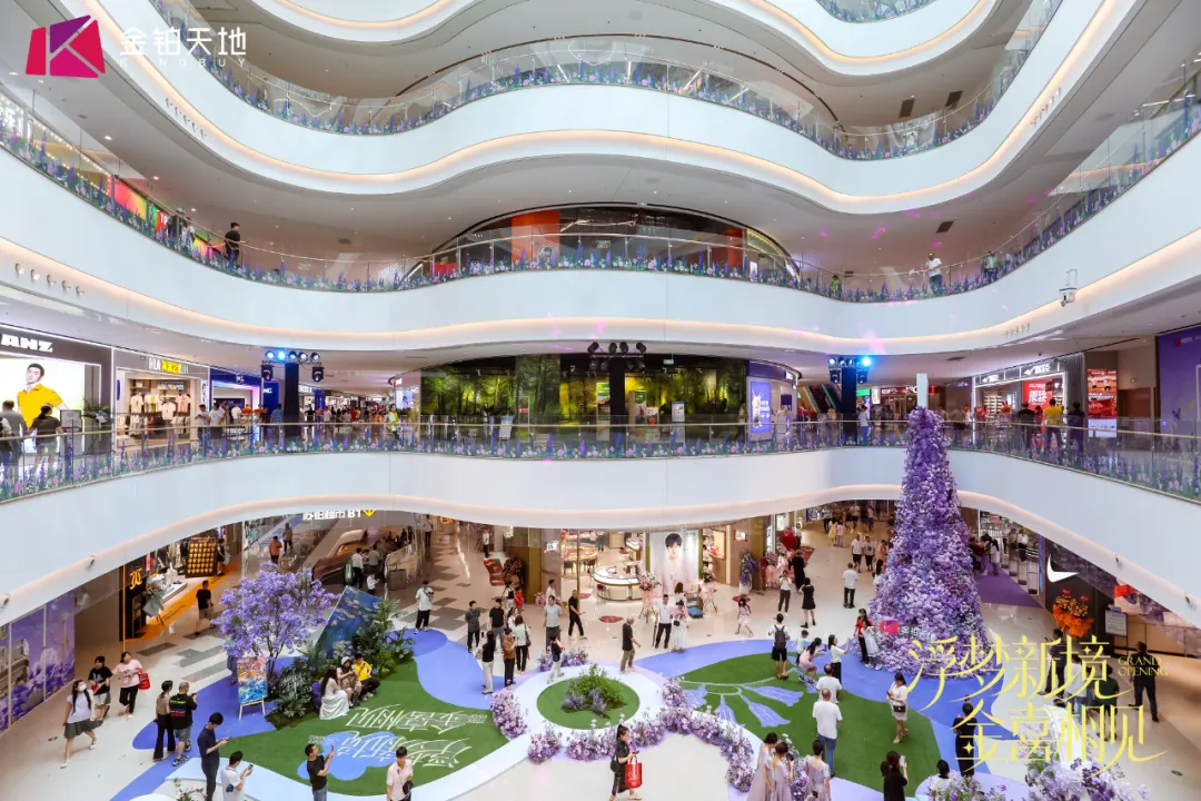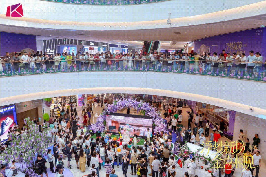 五一开业期间,白云湖金铂天地以 “浮梦新境” 为主题,打造五天不打烊的沉浸式狂欢体验:1号门外广场与3号中庭的 “紫色幻境・繁华絮语”花海装置,成为全城潮人打卡的浪漫地标;L1 中庭舞台“旋音秘境”白鲸乐队 live 秀、爱丽丝童话剧、锋芒街舞赛等多元演出轮番炸场;L4云梯绿廊的 “暮色花语・弦乐漫舞” 光影打卡区,将商业空间转化为艺术体验场;更有 “梦境环游主题巡游”贯穿全场,联动场内品牌打造互动式消费场景,首秀即展现强劲的流量操盘能力。