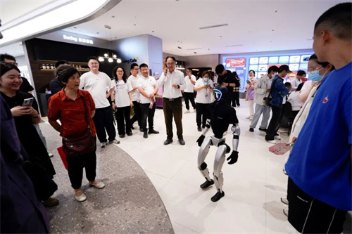 在苏宁易购Max南京新街口店,消费者正和新亮相的仿生机器人“跨次元”互动。五一小长假,苏宁易购加速推进零售业态升级,Suning Max超级体验店在南京新街口与北京中塔双城同开,构建集科技体验、社交互动、场景消费于一体的新型商业空间。数据显示,五一期间折叠屏手机、高端游戏本、智能穿戴设备、体感平衡车同比增长103%、247%、150%、492%。从“功能消费”向“体验消费”升级,苏宁易购可玩、可逛、可社交的消费新场景火出圈。