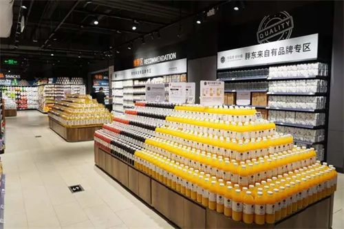 饮品区汇集依云、巴黎水等进口高端水,以及日本三得利乌龙茶、泰国芬达汽水等国际风味。罐头专区推出便携式小包装水果罐头满足户外消费场景。胖东来自有品牌专区集中陈列DL精酿啤酒、酸奶燕麦脆、葡萄汁、洗衣凝珠等口碑商品,永辉优选爆品黑松露火腿苏打饼干、奥巧脆脆燕麦片设立专属堆头。