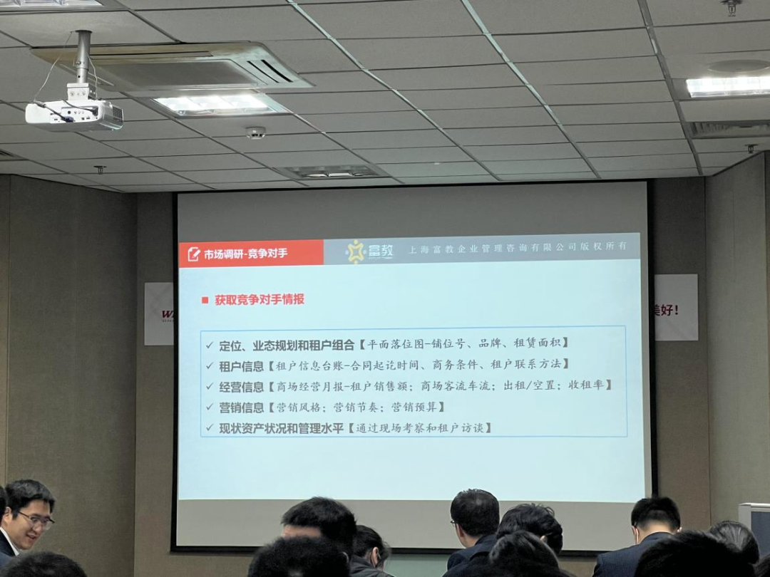 良好的招商调整必然需要精细化的营运锦上添花,而精细化营运本质是人和场的经营,故而“流量”是购物中心运营能否成功的关键指标之一,其涵盖客流量、销售额、租金收入等多方面。而租户营销能力的强弱影响着购物中心“流量”的优劣。杜玉华老师强调,购物中心与租户之间是彼此依存的“鱼水”关系,精准识别租户状态、量身定制租户销售目标、对租户进行经营扶持、帮助租户改善经营中遇到的问题、并进行跟踪检核、对于不适宜整改的租户主动招调,有助于购物中心提升流量。其中,扶持租户经营主要方式包含多种:营销引流扶持、媒体推广扶持、多经扶持、补贴礼品扶持、租金减免扶持。除此之外,杜玉华老师还在经营关键指标、收租经营预警技术、租户销售辅导、营企联动策略等方面进行详尽、系统、完整的讲解,并答疑解惑,与学员们深刻探讨了购物中心招调过程中面临的种种问题,进一步扩宽了学员的思路和视野,课堂气氛活跃,学习热情高涨,学员们均表示获益良多,收获满满。杜玉华老师的授课内容丰富、观点专业、体系完整,令在场学员深受启发,受益匪浅。这是一场智慧“盛宴”,亦是一场头脑“风暴”。相信这场干货满满的培训将为在场行业精英们今后的运营管理工作提供强大的理论支撑和实操参考!正如狄更斯所言,这是最好的时代,也是最坏的时代。随着中国购物中心已经进入存量和增量并举的新时期,面对复杂的变局,在营和筹开购物中心要想在激烈的竞争中脱颖而出,必须保持清醒的认识,不断优化调整、升级迭代,在招商调改方面做足功课。相信威海威高盛祥商业管理有限公司将继续砥砺深耕,勇毅前行,谱写新的未来!为期两天的企业内训虽已结束,但学习永无止境!作为深耕商业地产行业多年的专业性行业交流合作平台,中购联始终致力于做商业专业化发展的推动者和引导者,为行业所奋斗、为专业而坚守。未来,中购联也将持续洞察市场风向和消费需求,提供优质课程与服务,为行业人士搭建更多交流学习、沟通合作的桥梁。更多精彩培训课程,请持续关注中购联!威海威高盛祥商业管理有限公司成立于2013年,是威高控股集团旗下商业资产运营平台,目前在营的项目有:威高广场、威高时光城、威海民俗文化邨,服务大小商家700多个,总建筑面积达50万平方米。公司立足于威高品牌,秉持“用心 让生活更美好”的企业使命,以顾客需求为导向,持续创新,形成了“以商业定位、业态规划与招商、市场推广、运营服务为核心,以商业物业服务为支持”的现代综合商业管理体系。公司坚持“与合作方共赢,为社会创造价值”的经营理念,精耕威海商业市场,持续引领威海商业发展。