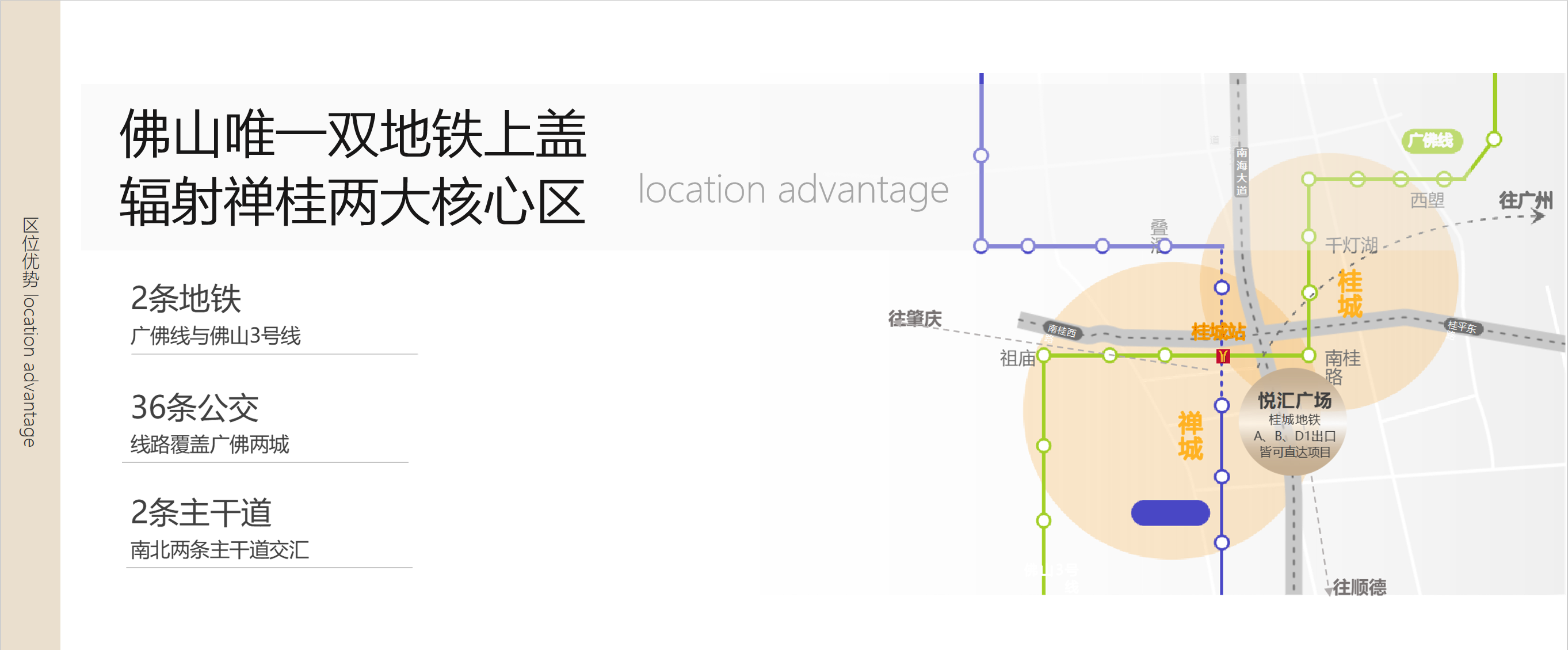 在广佛全域同城化推动下,佛山商业向品质化、生活服务型升级。越秀商管首个佛山“双地铁TOD商业综合体”悦汇广场・南海,以22万㎡体量构建“商务+生活+消费”闭环生态。项目凭借广佛线与佛山三号线双地铁交汇,搭配“地铁直达 + 36 条公交”,借南北主干道辐射禅桂经济圈,形成流量与消费双重引力。