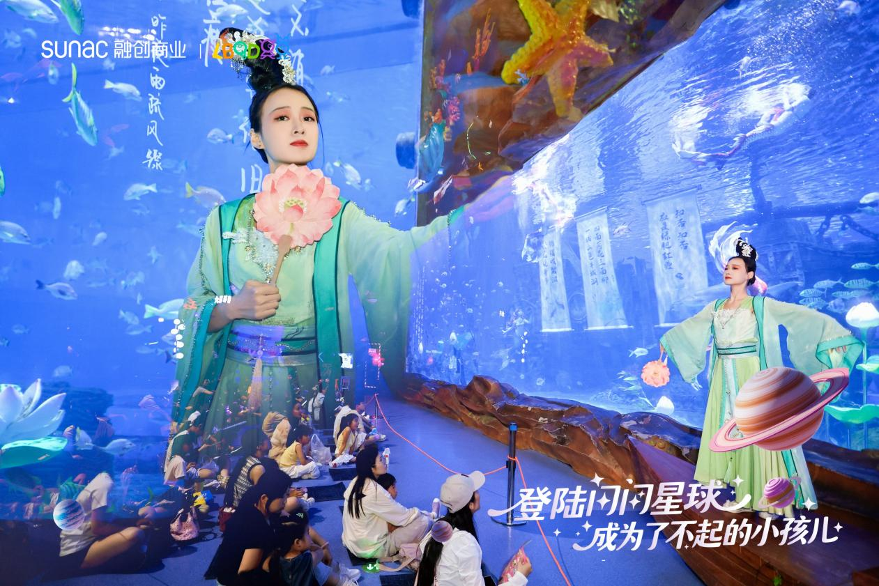 仪式现场上,嘉宾们跟萌娃们一起解锁“星球护照”,成为首批星球探险体验官,开启了一场妙趣横生的星球奇遇之旅。蔚蓝的融创海世界幻化为“探索星系”,孩子们簇拥在梦幻玻璃幕墙前,与憨态可掬的明星胖鲤鱼亲密互动,海洋划出银色弧线与孩子们的欢呼声交织,现场秒变海洋童话剧场;蹦蹦海鲜市场小巧玲珑的螃蟹钳夹起小石子、发光水母灯摇曳生姿,辨识奇趣海洋生物,边玩边学乐不思蜀。