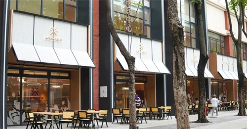 光明城市厨房昌平路店以独特的红砖外墙、通透的玻璃门厅和宽敞洁净的用餐区、时尚的外摆区,营造温馨而现代的“社区会客厅”氛围。