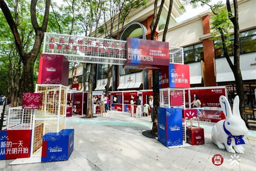 开业仪式当天,光明城市服务还联合街道举办“五五购物节”光明好市暨曹家渡街道邻里生活节市集,精选集团旗下乳业、肉业、粮油、蔬菜、水产、休闲零食等全产业链优质产品,以亲民惠民的价格与市民见面,用暖心城市服务和琳琅光明好物点亮静安曹家渡。