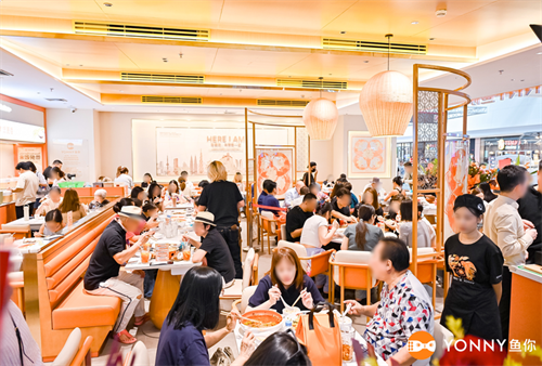 在新升级的门店里,灯光与品牌主色调“温暖橙”相呼应,强化了中餐讲究“热气腾腾”的感觉;消费者进门就会看到新升级的“亲嘴鱼+YONNY+鱼你”与橙色视觉墙,中式餐饮用餐的氛围感扑面而来。这也让人不禁联想到在泰国已经成为“顶流明星”的中国潮玩LABUBU。表面上看,这是潮玩与餐饮两个赛道的“出海”故事,但其实折射出的都是中国品牌全球化升级的核心逻辑:从产品输出转向文化价值输出。鱼你在一起开启泰国首店、完成品牌升级,正是将酸菜鱼从“特色单品”带入“东方饮食方式”的价值层面,为全球消费者建立一种可以理解、可以记忆、可以传播的酸菜鱼叙事逻辑。