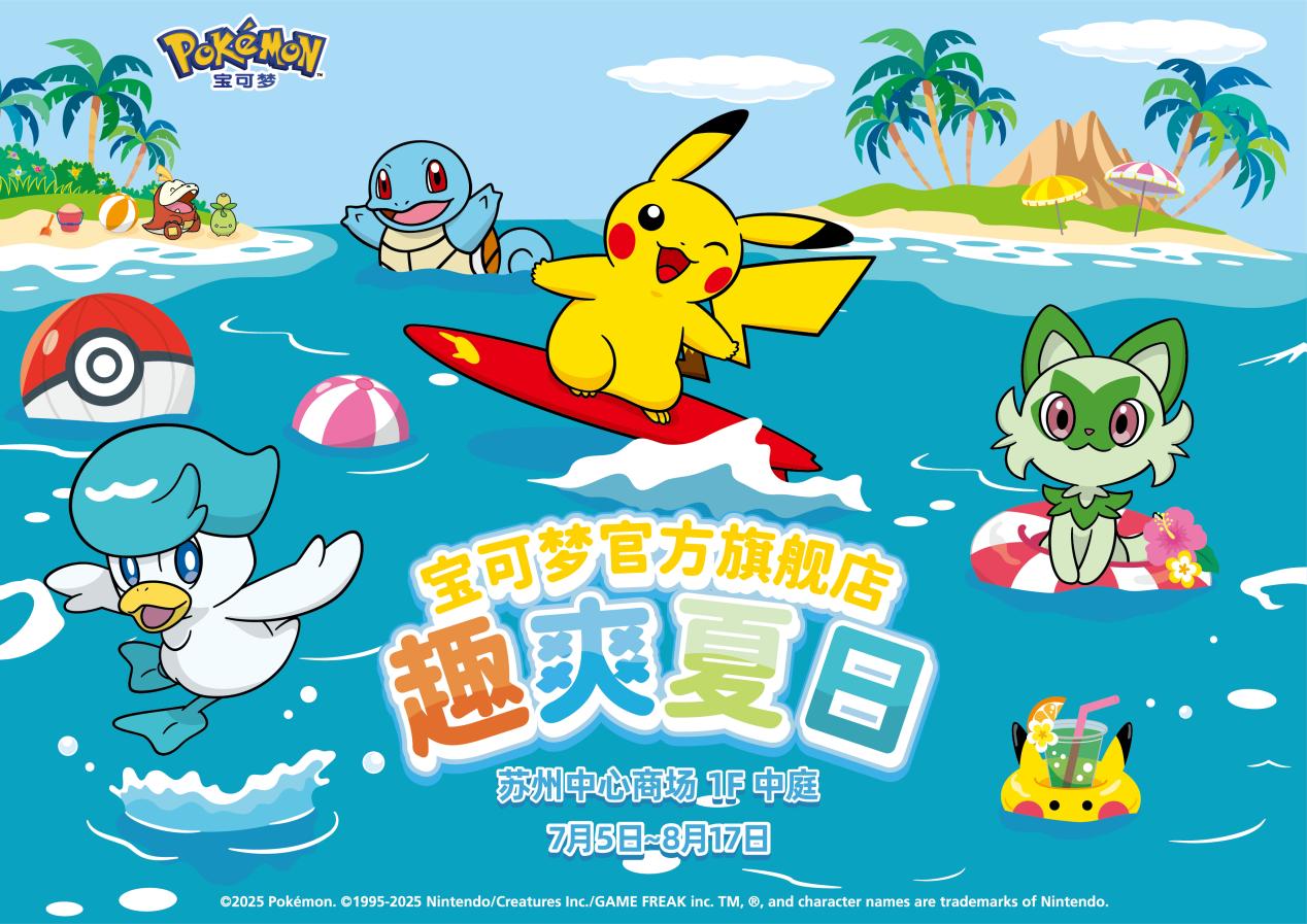 7月5日至8月17日,“宝可梦官方旗舰店-趣爽夏日”快闪将在苏州中心商场北区1楼中庭开启300平方米夏日沙滩派对。7米高巨型冲浪皮卡丘气模等你来打卡,趣爽夏日主题快闪系列首发亮相。不仅有冲浪板皮卡丘毛绒玩具和挂件,还有海地鼠系列等宝可梦夏日新品发售,更多以夏日为主题设计的产品也将同步登场。7月5日至6日,更有宝可梦在苏州中心商场与训练家们见面,还有机会和宝可梦合影留念。