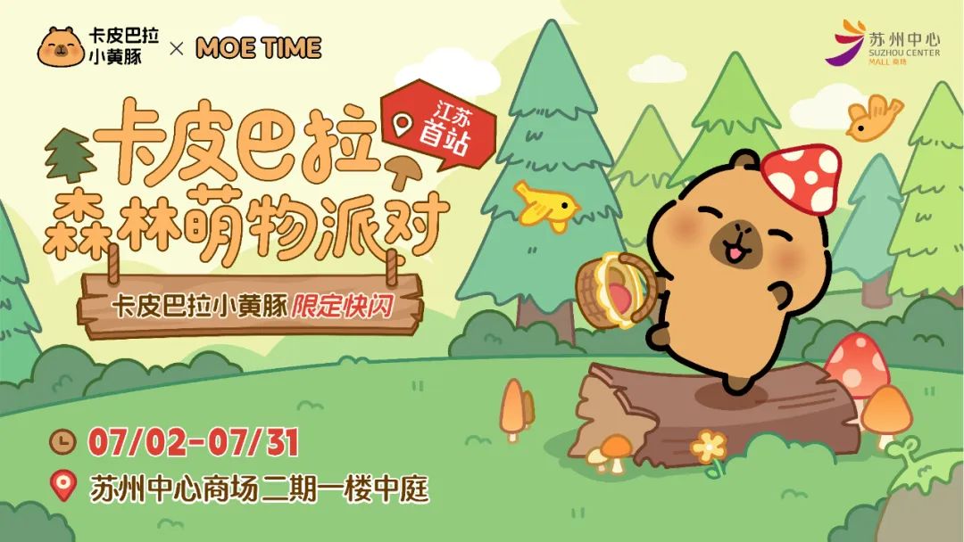 顶流IP卡皮巴拉小黄豚也将在这个暑假登陆苏州中心商场。7月2日至7月31日,“卡皮巴拉森林萌物派对”快闪江苏首站集结森林系列限定产品、潮玩爆款和多重福利引爆苏州中心商场二期。作为风靡全网的“佛系顶流”,卡皮巴拉小黄豚凭借慵懒萌态,成为年轻人松弛生活的精神符号。这个夏天,与卡皮巴拉小黄豚共赴一场“情绪休假”,享受独一无二的沉浸式森林奇遇。