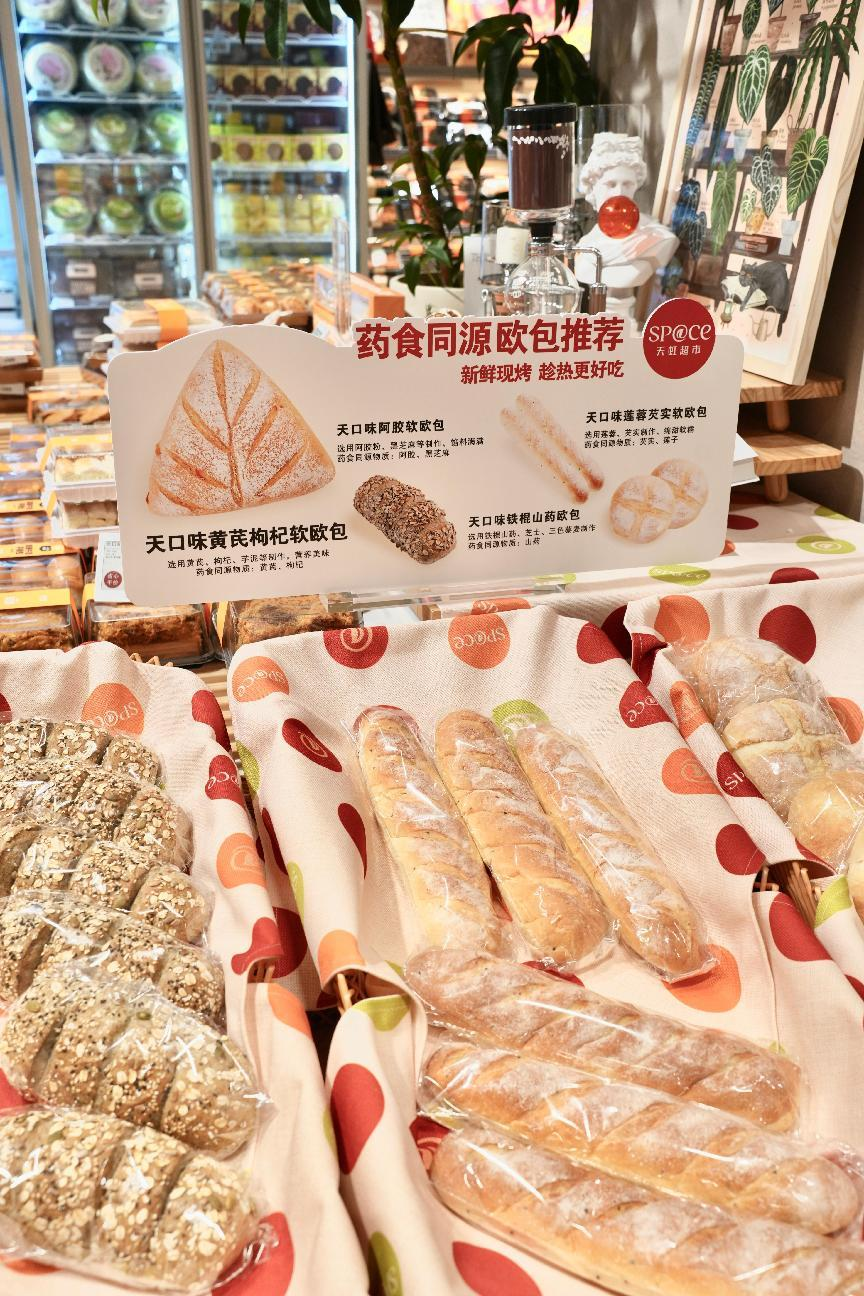 sp@ce3.0坂田店以“药食同源烘焙”为核心理念,持续深化健康标签体系化优势,创新研发独家莲蓉芡实面包、阿胶软欧包、黄芪枸杞软欧包等烘焙系列,突破性在于高频场景的健康转化,将养生理念进一步融入日常饮食。以此为基础,sp@ce天虹超市正加速冲刺健康商品占比50%、SKU破2000的目标。