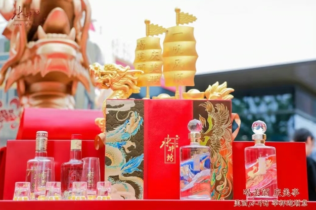 以2025年端午节为例,水井坊携手“中国铜雕第一人”朱炳仁大师,联袂打造“一帆风顺金龙舟”巨型艺术装置,开启一场横跨长沙、宜春、广州、保定、济宁、嘉兴、湖州等全国多城的“顺意”接力之旅。