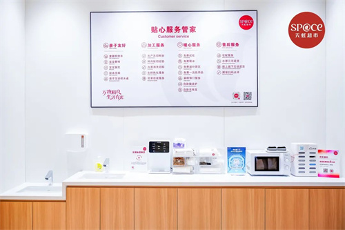 sp@ce3.0五缘湾天虹店提供近100项精细化服务项目,给本地消费者带来升级体验:既有水果切配、鲜肉分割、水产处理等免费加工服务,也有方便家庭出行的儿童购物车、宝宝餐椅及互动专区。“水果三无退货”政策,让消费者线上线下无忧退换。此外,门店还设有自助微波炉、茶饮站、免费取冰处等便民设施,并提供专业挑选工具,这些细节让超市超越单纯的购物场所,成为有温度的生活空间。