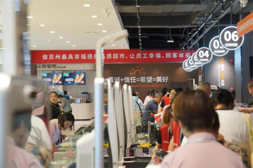 永辉超市苏州区域相关负责人表示:“吴江吾悦广场店作为永辉在苏州的第二家、吴江区首家胖东来模式调改店,是我们在苏南市场深化布局的重要里程碑。此次调改全面学习胖东来的优秀经验,尤其是其‘以人为本’的经营精髓,并融入本地特色。