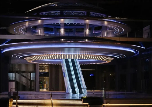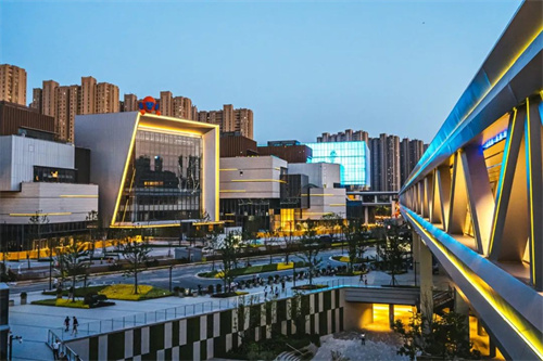 中心C位的HUB飞碟兼具未来感与艺术性;多层挑台屋顶公园将自然与建筑无缝衔接;跨街X连廊超越传统交通功能,成为城市观景的“第二地面”。裸眼3D大屏、艺术装置及沉浸式互动体验进一步强化项目的科技属性,精准契合年轻客群对“社交+体验+仪式感”的多元需求。