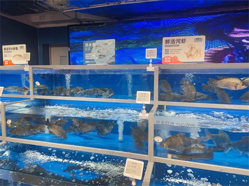 肉品区的热气鲜杀猪肉堪称一绝。猪肉产自清美江苏沭阳黑猪基地,鲜宰后快速送店,工作人员现切现卖,让市民第一时间品尝到新鲜滋味。水产海鲜区则汇聚各类吊水鱼、虾蟹等淡水水产,以及帝王蟹、澳洲大龙虾等海鲜,还贴心提供剖鱼、切片等免费服务,为消费者省去处理麻烦。