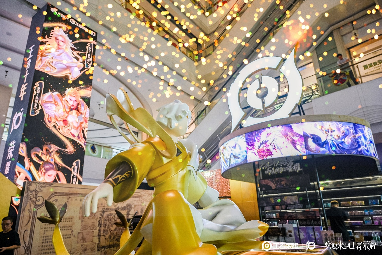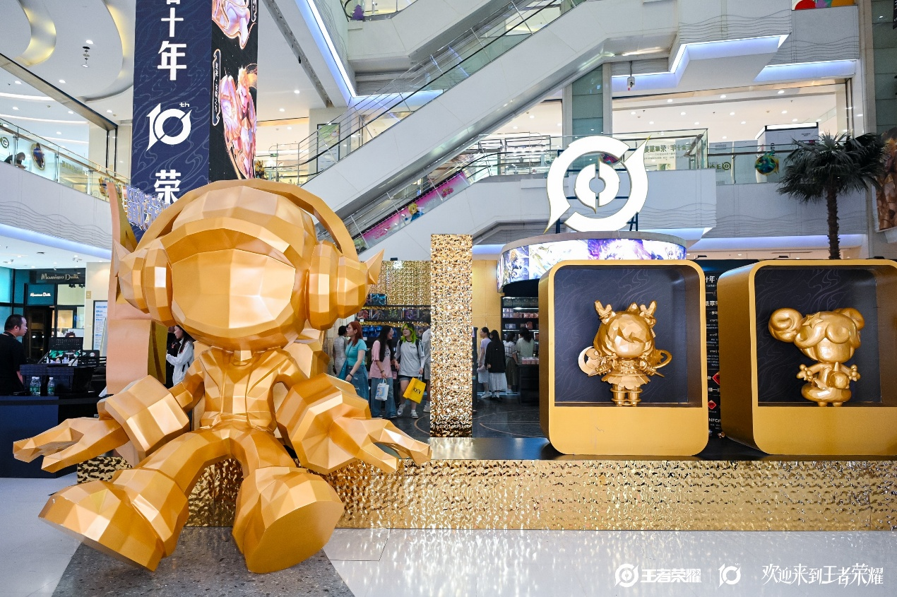 走进朝阳大悦城1F,以「黑金」为主题配色的王者荣耀十周年全国快闪亮相中庭主场。作为国民级竞技手游,王者荣耀从线上场景延伸到线下开展,话题本身已极具热度。此次IP展还联合中国邮政发行了《王者荣耀十周年》系列邮资机戳,致力为游戏粉丝与集邮爱好者打造可玩、可购、可留念的文化盛宴。