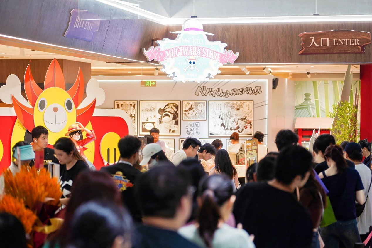 位于商场2F的航海王草帽商店·华北首站,则在展览入口设置了漫画主角路飞的经典造型,现场还有1:1还原人物立牌、精美漫画墙等美陈装置,以及人气coser空降等活动吸引粉丝打卡。烧麦玩偶、奈美生日周边、熊猫一伙系列等北京限定新品更成为供不应求的IP周边,通过引进稀缺性、独家性产品与场景,北京草帽屋给了消费者一个“只能来这买”的理由,开业3日累计接待客流近万人次,销售额过百万。