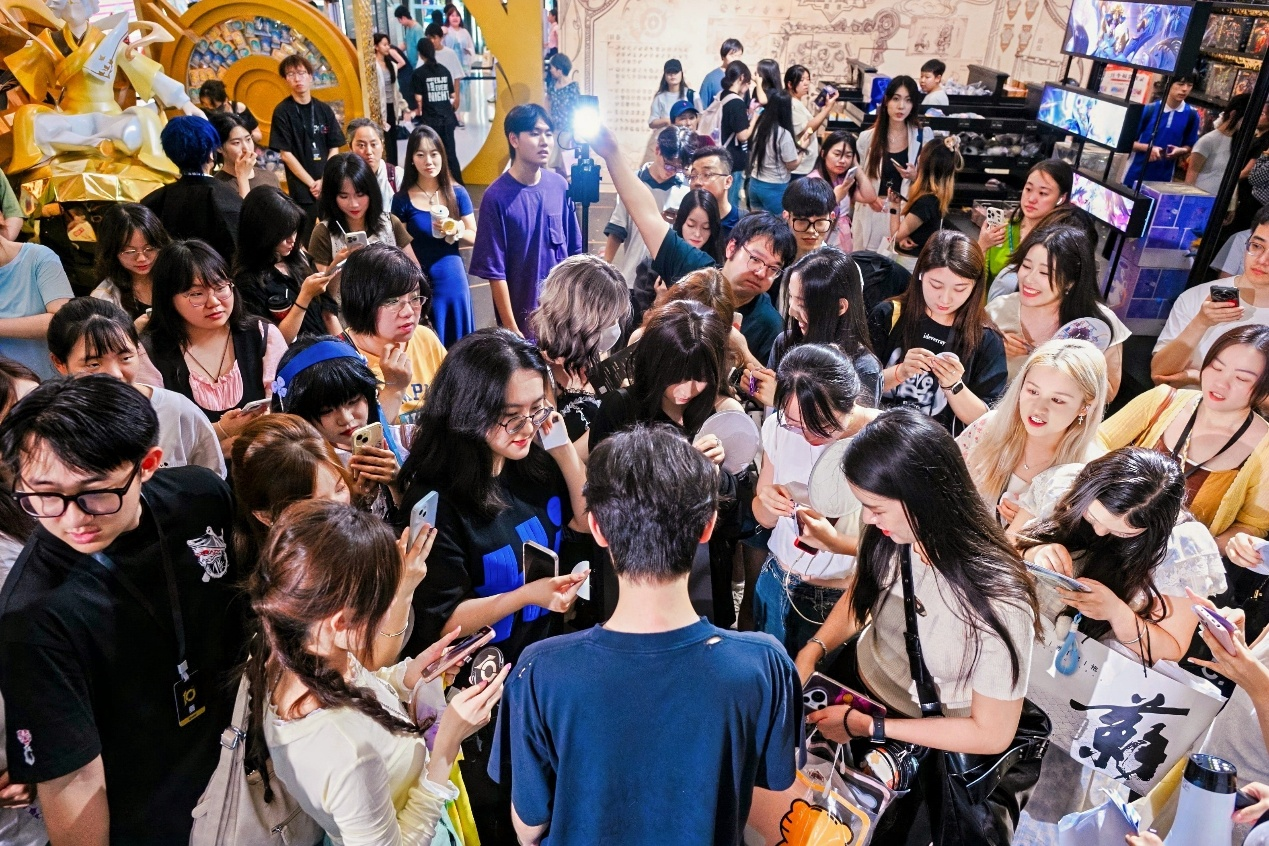 在现场,各种游戏角色艺术装置、巨型游戏人物气模、官方正版扭蛋机等成为粉丝排队的热门打卡点。此外,免费送皮肤、打卡集章送福利等游戏互动在丰富沉浸式体验的同时,依托社交平台二次传播,引发全城游戏玩家不断集结,持续强化聚客效应。