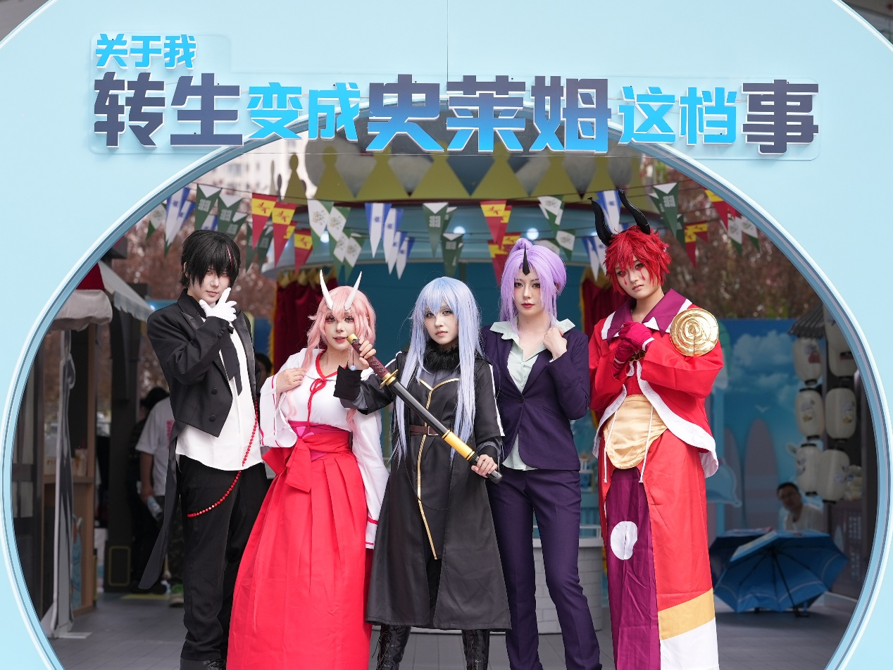 在户外正门广场,关于我转生变成史莱姆这档事·全国首发带来coser巡游、专享礼遇、限定周边、树洞心愿簿等诸多趣味活动,展览以青春靓丽的海蓝色映入眼帘,精心复刻了多个动漫经典场景。展览期间,粉丝还可乘坐青年路地铁6号线打卡限定史莱姆痛车。