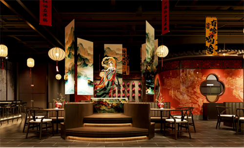 门店为中式复古风。彩墨山水画墙在灯光下晕染出诗意,大鼓与满墙的酒器点缀其间,处处透着江湖的洒脱与豪情。而身着店小二服饰的服务员,开口便是带着古风的问候,瞬间将人拉入那个快意恩仇的江湖世界,氛围感拉满。