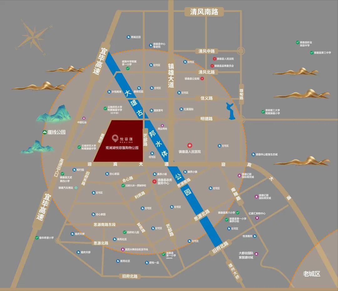 观澜湖悦容匯购物公园落位于昭通市镇雄县“十四五”规划核心商贸区——南部新城,坐拥观澜湖高端住区与城市主干道双重辐射,深度覆盖30万常住人口及县域百万级消费客群,商业总建筑面积约为5万平方米,业态规划「精品生活馆、烟火食巷、亲子乐园、光影聚场以及健康能量站」五大主题模块,打造县域首个“一站式家庭生活中心”,成为镇雄乃至滇东北区域的商业新地标及城市会客厅,为镇雄建设现代化区域中心城市注入可持续动能。