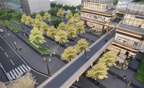 项目商业部分——西安ICC环贸天地购物中心建筑面积约2.5万平方米,采用开放式"生态漫步式街区"设计理念,融合丝路云廊、银杏广场等特色公共空间,致力于打造西安首个CBD中心绿洲。同时,项目将自然生态景观与城市商业活力深度融合,构建集购物、餐饮、娱乐、休闲、文化等多业态于一体的生态友好型商业范本。