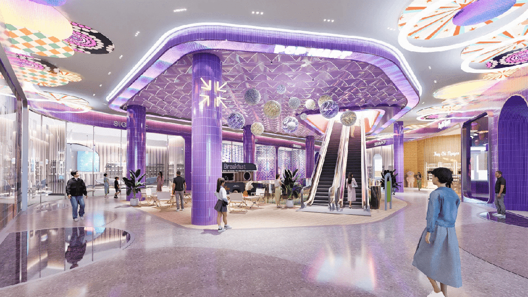 地下商业从效果图来看更像是藏进了老上海的魂,融合水晶石库门与虹桥集镇元素,青砖拱券与玻璃展柜碰撞,打造出“潮流食集”与“甜品岛”,传统建筑文化成为了消费场景的加分项