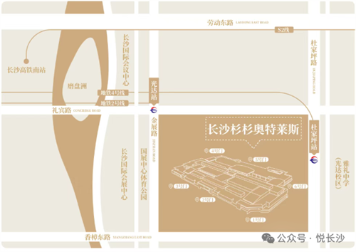长沙杉杉奥特莱斯,位于长沙市会展片区香樟东路777号,地铁4号线杜家坪地铁站直达,交通便利。