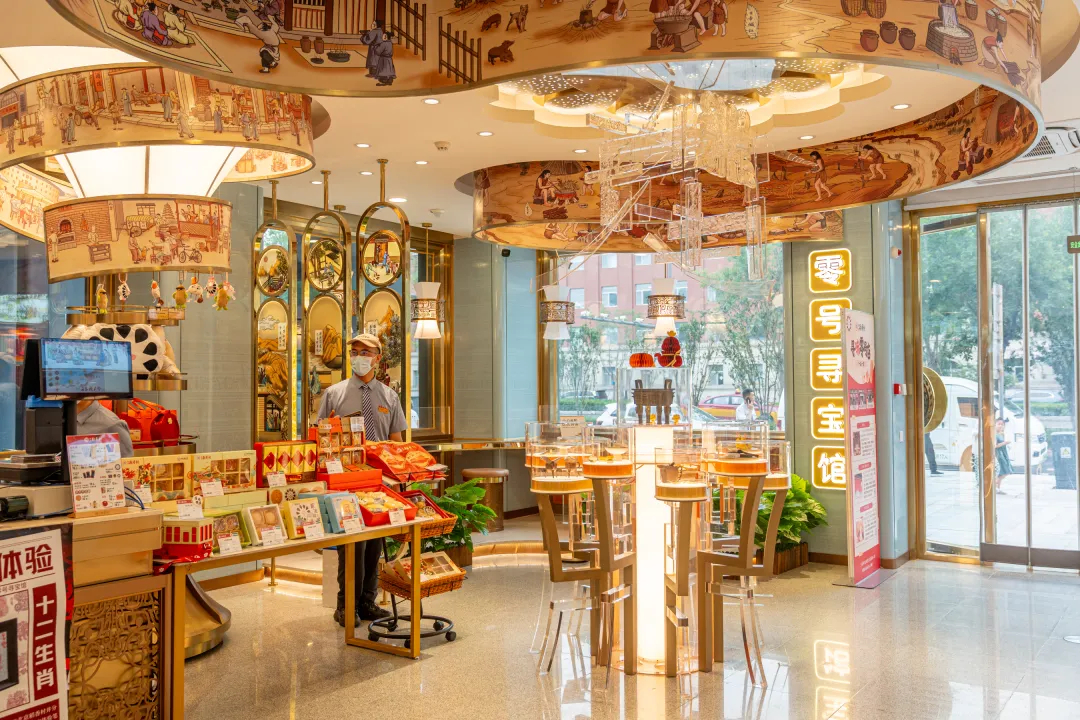 梅潭村糕饼铺:3D 打印天花板复刻隆福寺天宫藻井,圆月五脊六兽打卡墙出片率高,点心伴手礼充满北京味。