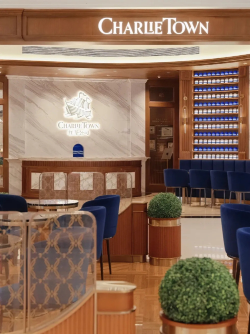 2021年,CHARLIETOWN红茶公司在上海开设了首店,并迅速在上海走红。品牌选用英国豪门伯爵、南非香草博士、东印度阿萨姆、斯里兰卡云顶锡兰、中国崇安正山小种等五款顶级茶叶,并根据季节和节日变化推出特色茶饮。整体风格为英伦复古风,以原木色家具为主,装饰墙由克莱因蓝茶罐和白色茶罐组成。店内看不到制作流程,所有产品通过一个“传送门”递到吧台上。